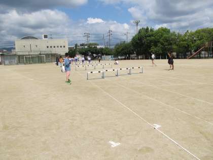 子どもたちは自分に合ったインターバルでリズムよくハードルを跳ぶことを意識していました。