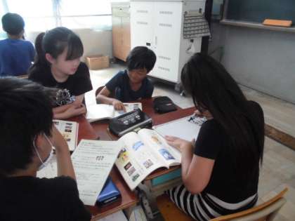 夏からイメージされるものを班で話し合い、たくさんの言葉集めをしました。