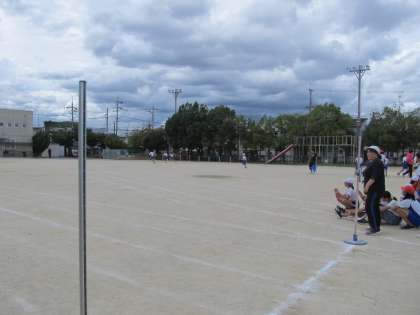 2学期のはじめの体育は100m走をして、タイムを計りました。
