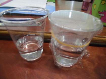今日は、蓋をしたコップと蓋をしていないコップに水を入れ、変化を比較しました。