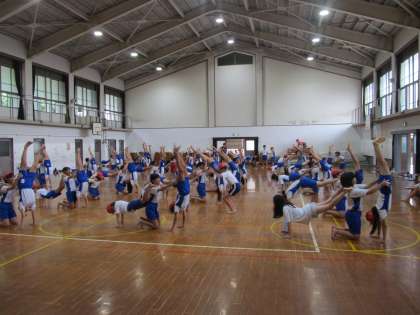神川スポーツフェスティバルで披露する団体演技の練習を進めています。