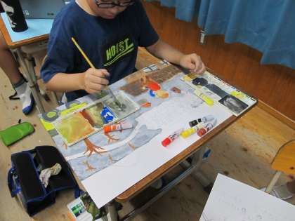 図画工作科では、物語を読んで、自分の印象に残った場面を絵にしています。