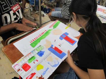 それぞれが絵にしたい場面を言葉から想像し、構図にも工夫しながら丁寧に描いています。