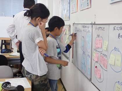 誰に向けての商品なのか、みんなが喜ぶためにはどのようなデザインにすればよいのかを話し合い、グループごとに発表しました。