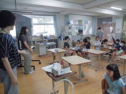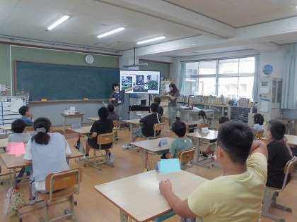 ALTの先生と一緒に英語の学習をしました。夏休みのお話を聞いたり、英語で文を作る活動をしたりしました。