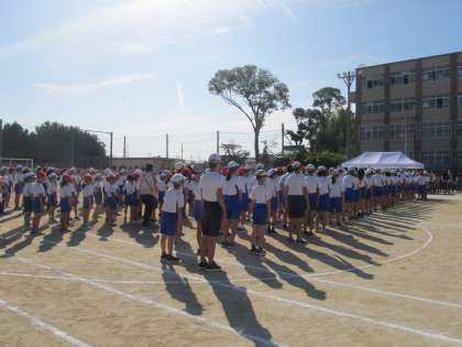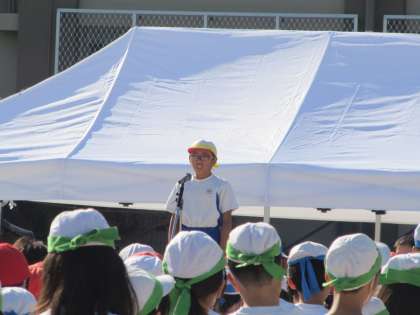 開会式では、児童会が開会宣言やスローガンを発表し、6年生のクラス代表が選手宣誓をしました。