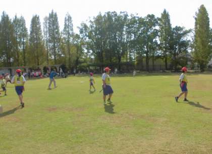 合同運動会のあと、昼食を食べ、羽束師小学校と久我の杜小学校と一緒に遊びました。前半はしっぽとりをして楽しみました。みんな元気いっぱい走っていました。
