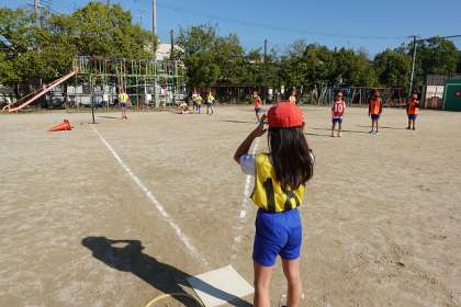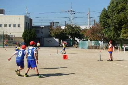 秋晴れの中、運動場に元気な声が響いています。