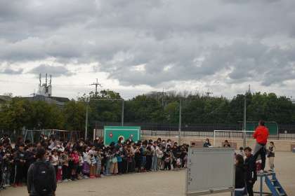 運動場で楽しくビンゴをしていました。