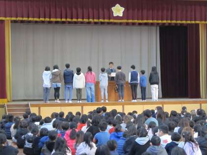 校長先生からお話があって、そのあとに表彰式がありました。