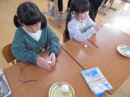 アイデアスケッチを見ながら、材料を選んで立体作品を作っています。「ここはこれで造ろうかな。」「色は黒を塗ろう。」など、考えながら取り組んでいます。完成が楽しみです。