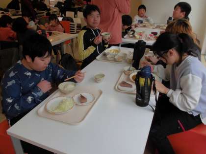 『動物園』と『小さな巨匠展』を楽しんだ後、少し遅めの昼食を京都大学の学食で食べました。生活単元学習で学んだレストランの利用を実践。栄養のバランスを考えてメニューを選んだり、レジでのやり取りを自分でしたりしました。そして、おいしく食事をして、大満足の子ども達でした。