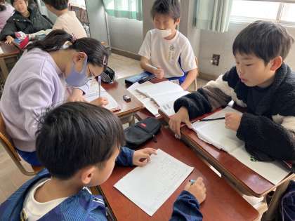 国語の学習で、普段の生活をテーマに、アンケートを作成しています。