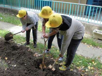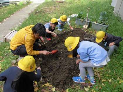 今年も夏野菜を育てようと、畑の土づくりをしました。穴を掘って肥料を入れ、土と混ぜました。次回は畝づくりをします。