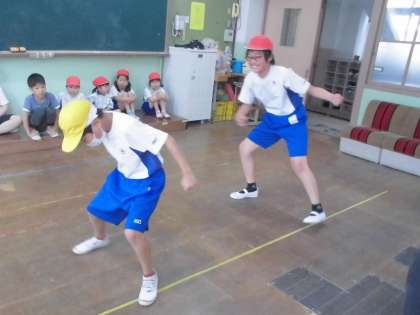体力テストの反復横跳びに挑戦しました。3本のラインをまたいで回数を数えます。20秒間で何回できるか挑戦。みんな最後まで頑張って跳んでいました。