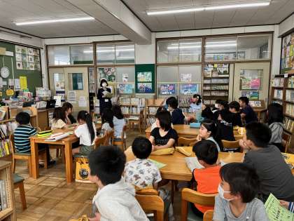 図書館オリエンテーションを行いました。図書館の本の並び方やラベルの確認をした後は、本の分類からクイズをしました。なかなか難しかったようです。たくさんの本に親しんでほしいと思います。