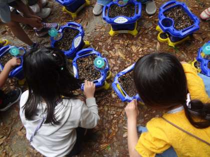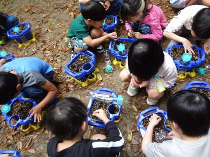 種を土の中に入れたり、土をかぶせたり、1つ1つのことに真剣に取り組んでいました。