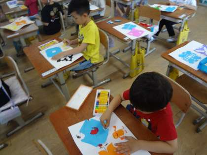子どもたちの想像の幅はとても広く、いろいろな見方をして周りに絵をかいていました。