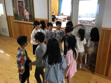 1年生と一緒に学校探検をしました。