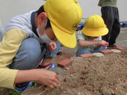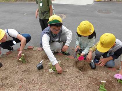 大空の花壇に、ペチュニアの苗とひまわりの種を植えました。きれいな花が咲くのが楽しみです。素敵な花壇にしたいです。