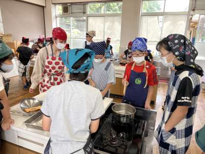 班で協力して野菜を切ったり、味付けしたりしておいしく食べました。