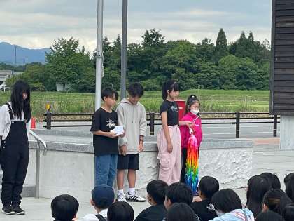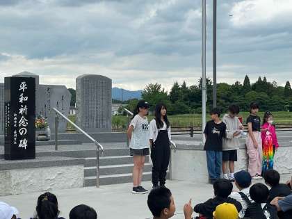 平和の集いを行い、戦争で亡くなった方に向け、千羽鶴を捧げました。