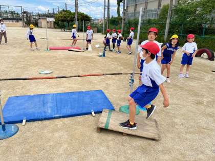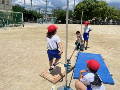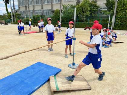 今年初めて体育科で「高跳び」の学習をしました。3歩か5歩助走を選んで、リズムよくはさみ跳びで跳びます。最初はこわごわ跳んでいた人も、どんどんしっかり踏み切って高く跳べるようになりました。友達にアドバイスしたり、跳べたら拍手したりと協力して取り組む姿が素晴らしかったです。