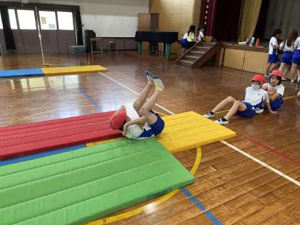 ねらい2の活動では、技を完成させるために、それぞれの練習の場で一生懸命取り組む姿が見られました。