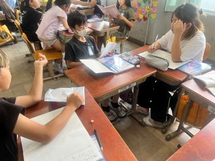 国語科では「一つの花」の学習をしています。お話は戦時下のある家族が主人公です。「一つだけ」という言葉に着目しながら、場面の様子を比べて学習を進めてきました。学習のまとめとして自分が一番心に残ったことを話し合いました。同じところを選んでいても感じた思いはそれぞれだったり、まったく違うところを選んでいたけれど、その理由に納得したりと、お互いの思いを聞きあうことができました。