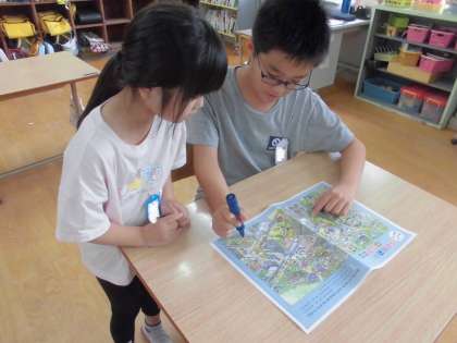 道徳の時間に、生き物を大切にすることについて考えました。グループに分かれて絵を見ながら、生き物を大切にしているところや、してはいけないところを見つて、理由も説明しながら発表しました。