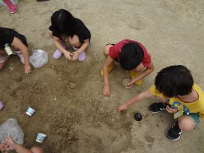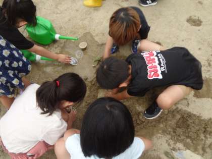 グループで協力して水を運んだり、穴を掘ったりする姿が印象的でした。