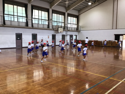 体育で漁師(鬼)に捕まらないように、魚(逃げる人)になって