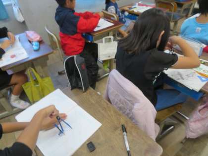 コンパスで円を描くことに苦戦していますが、上手に描けると嬉しそうにしています。