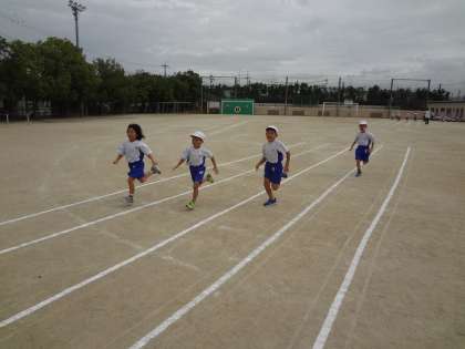 50m走では、最後まであきらめずに走ることを目標に取り組んでほしいと思います。