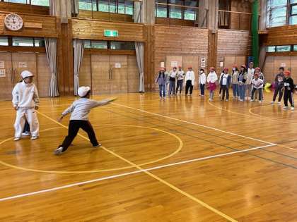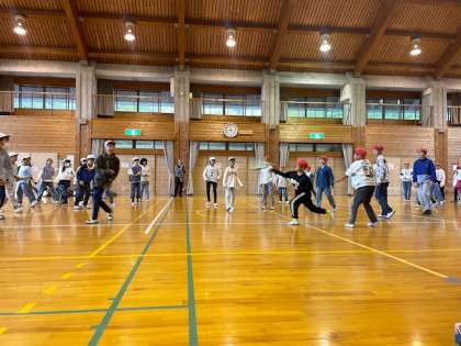 ゴシ谷ハイクの後にグランドでクラス別にレクリエーションをする予定でしたが、少し雨が降ってきたため、予定を変更してプレイホールでクラス対抗ドッジビー大会が開かれました。