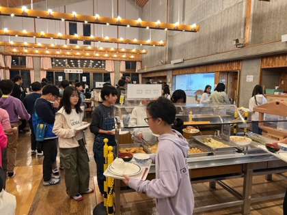 美味しそうな料理が色々あり、どれを食べようか悩みながら、みんなたくさん食べていました。