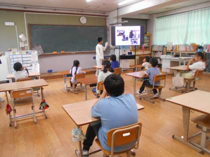 5年生が2泊3日の花脊山の家での活動の振り返りをし、それを大空の友だちに発表しました。大変だったことやできるようになったこと、嬉しかったことなど、たくさん話していました。また、写真を見ながら活動を詳しく説明し、他の子どもたちも興味津々、質問にもしっかり答えてくれました。山の家で大空の友だちに向けて2人が書いたハガキも届き、みんな大喜び。みんなで5年生にお礼を言いました。