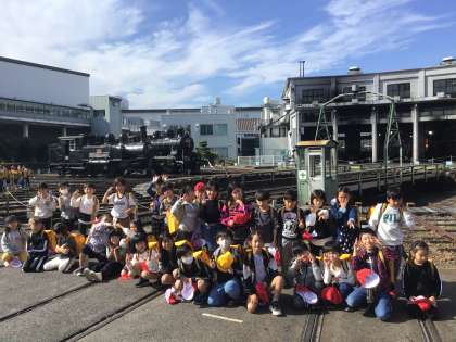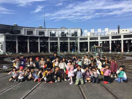 転車台の前でクラス写真を撮りました。