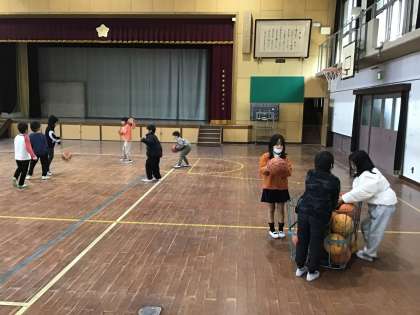 体育館で子どもたちがやってみたいボール競技を楽しみました。