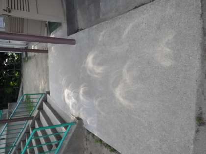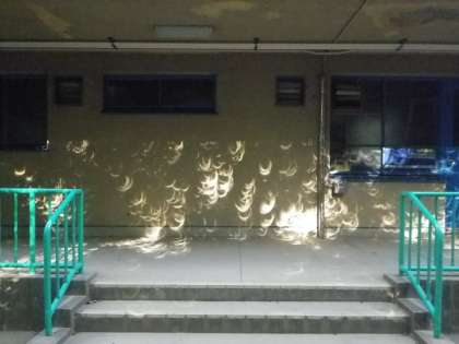 日食めがねが無くても,ピンホール効果で学校のいろんなところで現れた不思議な影を見ることで,日食を楽しむことができました。