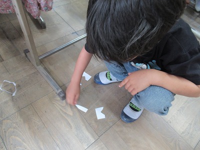 できた形を机や床に並べ、「なんかモンスターみたい!」と、