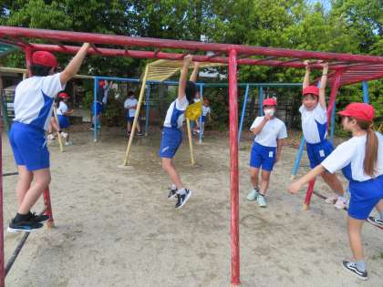 花背山の家でアスレチックをする予定なので、体育の時間にうんていや肋木を練習しました。久しぶりに使った子もいて、楽しんでいました。