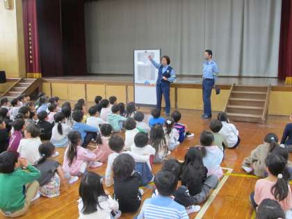 警察署の方にお越しいただき、交通安全教室を開いていただきました。