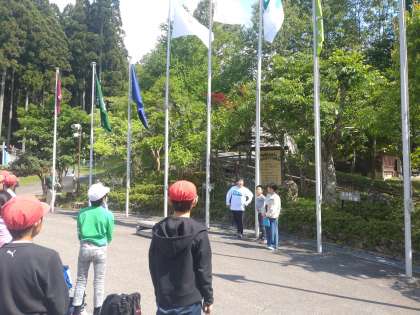 退所式をして、花背山の家にさよならし、バスで帰っています。
