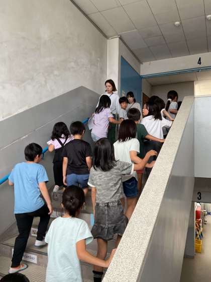 避難訓練は本番のように真剣な表情で取り組めました