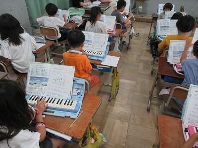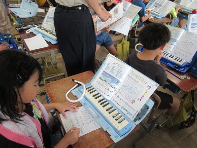 音楽の学習では、鍵盤ハーモニカで「ぷっかり くじら」を演奏しています。