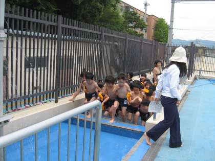 しょうがっこうのプールははじめてなのでドキドキ。