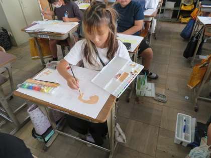 クラスそれぞれ1冊ずつ本を読み聞かせてもらって、想像したことを絵に表しています。