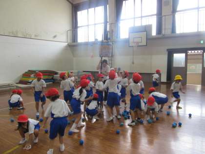 玉入れも試しにやってみましたが、最初は玉を投げるのが楽しくて、あまり籠を見ないで投げていたので、そんなにたくさん入りませんでしたが、少しずつ籠を意識して投げるようになり、上手になってきました!