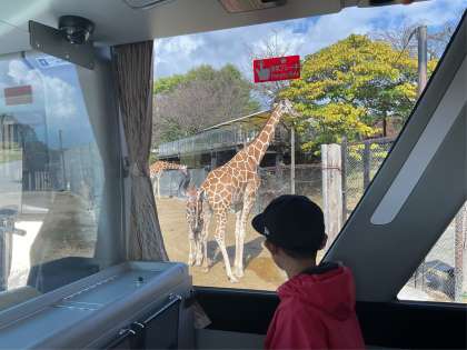 観光バスに乗ってチーター、ライオンなどの肉食動物をその後はキリンなどの草食動物を見学しています。